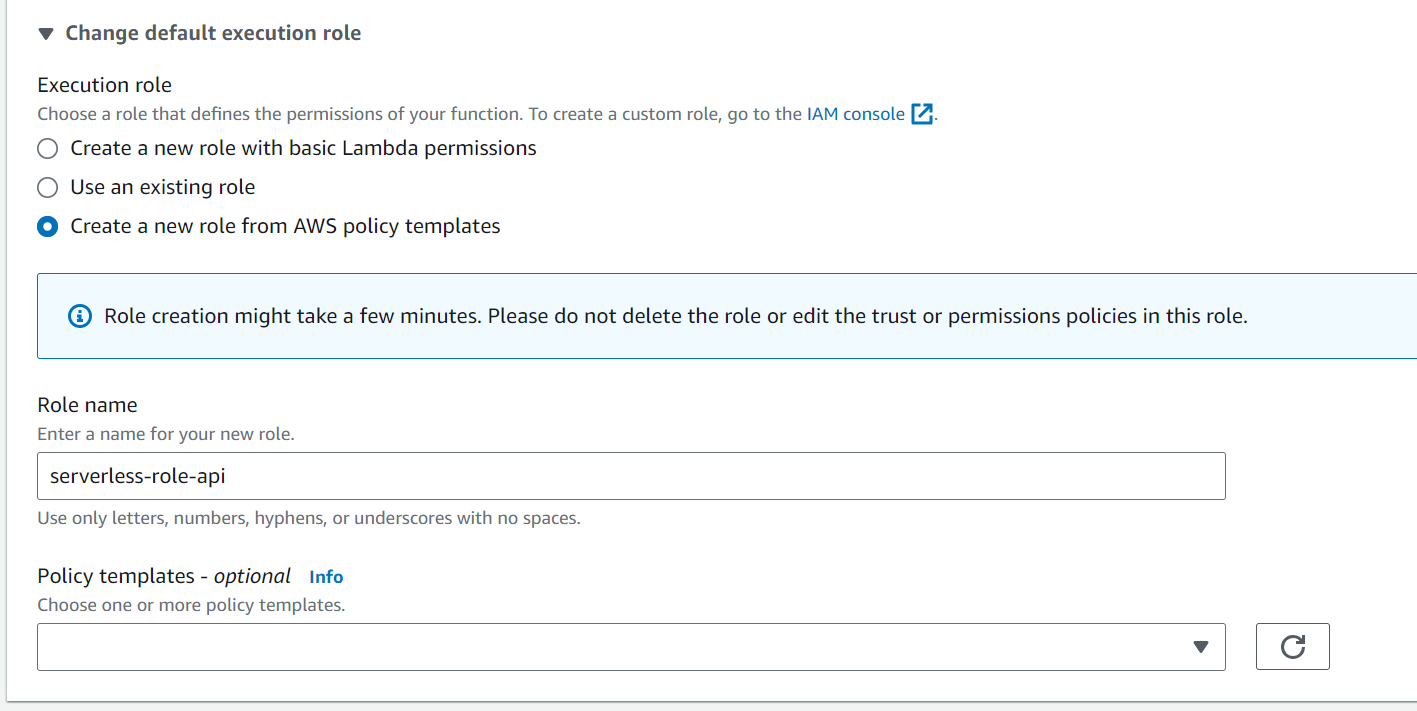 Role name -> type any meaning full name. -> serverless-api-role