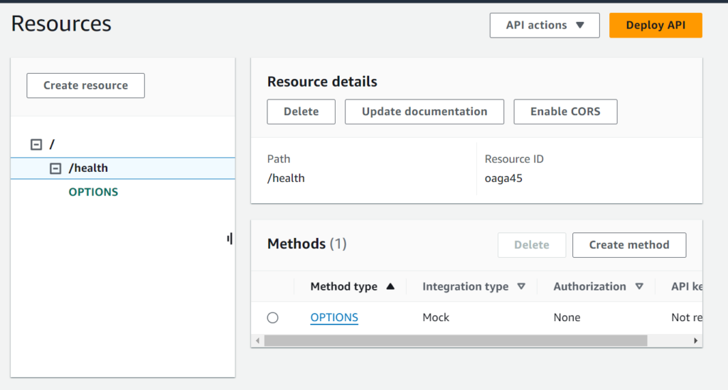 You can see “OPTIONS” method is created.