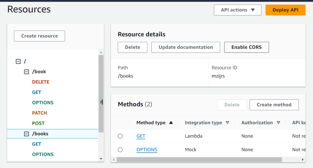 If you created resources, thereafter also you can Enable Cors, just click on any resource -> click ‘Enable CORS‘ under Resource Details.